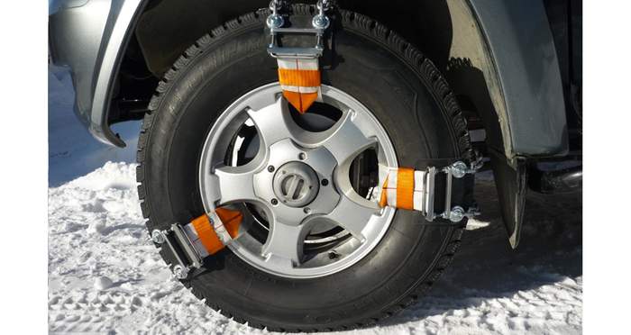 Браслети – ефективний засіб проти буксування коліс у снігу, може вистачити навіть і одного на колесо, щоб вибратися з замету або колії.