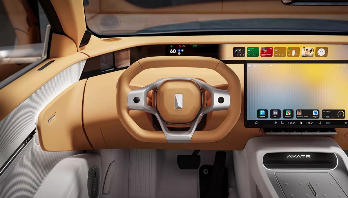 Однак, найбільше увагу привертають велика кількість дисплеїв. Автівка має 15,6-дюймовий екран інформаційно-розважальної системи та 35,4-дюймовий дисплей, який тягнеться на всю ширину торпедо. Системою керує операційна система Harmony OS 4 від Huawei.
