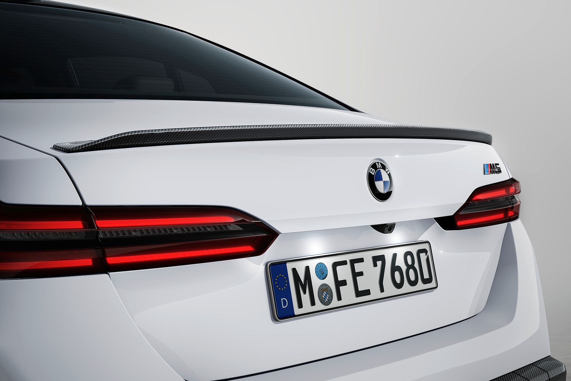 Окрім цього, новий BMW M5 можна замовити з матовими чорними бічними наклейками та арамідною антеною у формі плавника акули. BMW повідомляє, що з літа 2025 року для нового BMW M5 будуть пропонуватися легкосплавні диски M Performance.