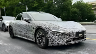 Ззаду тема схожа – на піксельне світлодіодне освітлення, з чотирма прямокутними підписами заднього світла, які сидять попарно по обидва боки значка “IONIQ 5”.