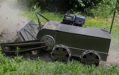 Що стосується машини розмінування, її конструкція майже завершена. Основне завдання — оновити пульт дистанційного управління з кнопок на сучасний джойстіковий варіант. У машині використано звичайний карбюраторний двигун, імовірно Loncin. Ланцюгові молотки розпушують ґрунт на глибину 10 сантиметрів, обробляючи смугу шириною 1,2 метра. Винахід дозволяє очищати до 4,5 кілометра території за годину.