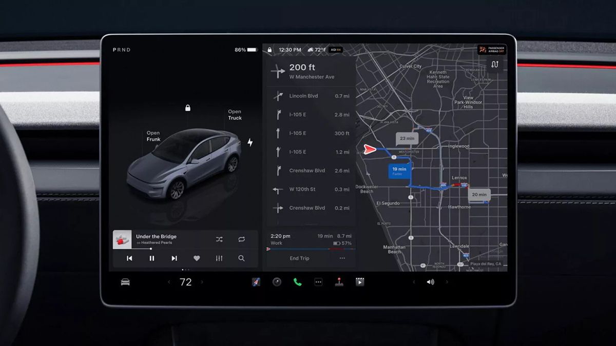 На відміну від Model 3 Highland, кермо Model Y Juniper зберегло більш традиційний стиль перемикачів, хоча селектор КПП було інтегровано в центральний дисплей. Останньою ноткою стилю є нова аудіосистема з прихованими динаміками.