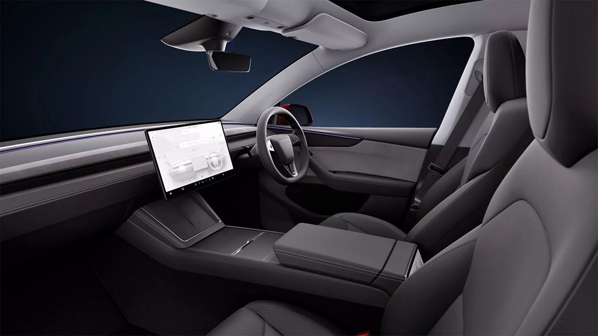 Ззаду також є світлова смуга на всю ширину кузова з темним покриттям. Також є новий дизайн дверей багажника та дифузор. У той час як Tesla стверджує, що дизайн екстер’єру був “повністю перероблений”, профіль Model Y, схоже, значною мірою перенесено, за винятком нових передніх крил і невеликих змін у датчиках.