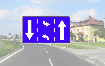 Польські правила дорожнього руху скоро поповняться новим знаком – знак F-23, відомим як “Багатоцільова середня смуга руху”. Цей знак вже отримав затверджену форму, малюнок та кольорову схему, однак його офіційне впровадження очікується за декілька місяців.