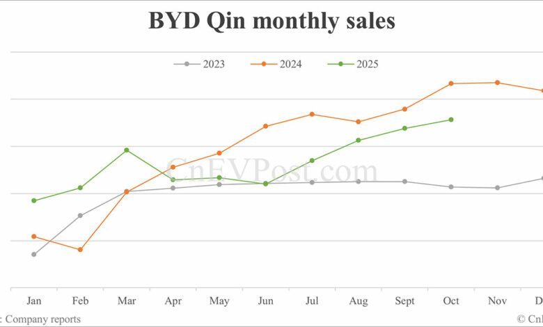 Сімейство Qin забезпечило значну частку продажів із 71,248 проданих одиниць протягом жовтня, що робить його найуспішнішою моделлю BYD. Це на 17,72% менше порівняно з аналогічним періодом минулого року, але на 5,43% більше, ніж у вересні.