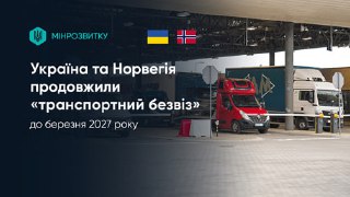 Міністерство розвитку повідомляє про досягнення домовленості між Україною та Норвегією щодо продовження угоди про “транспортний безвіз” до 2027 року.