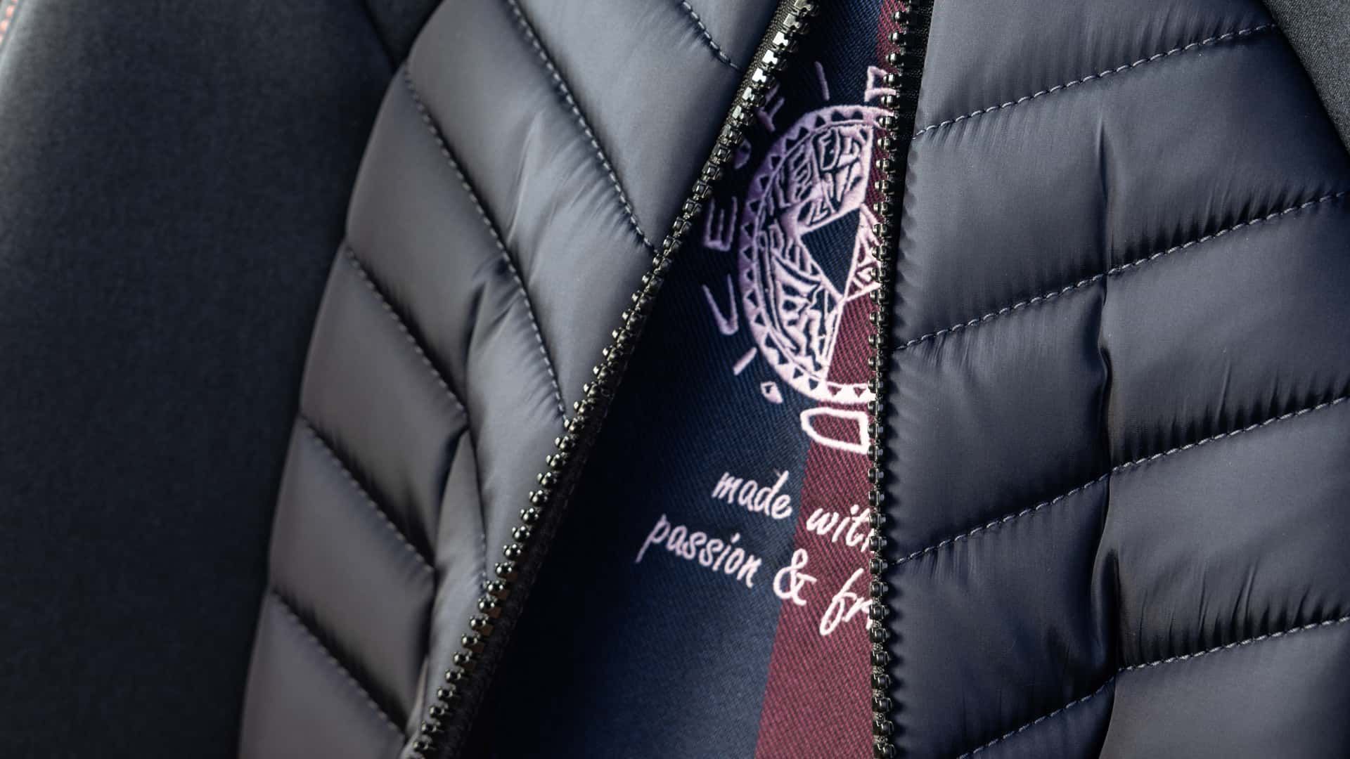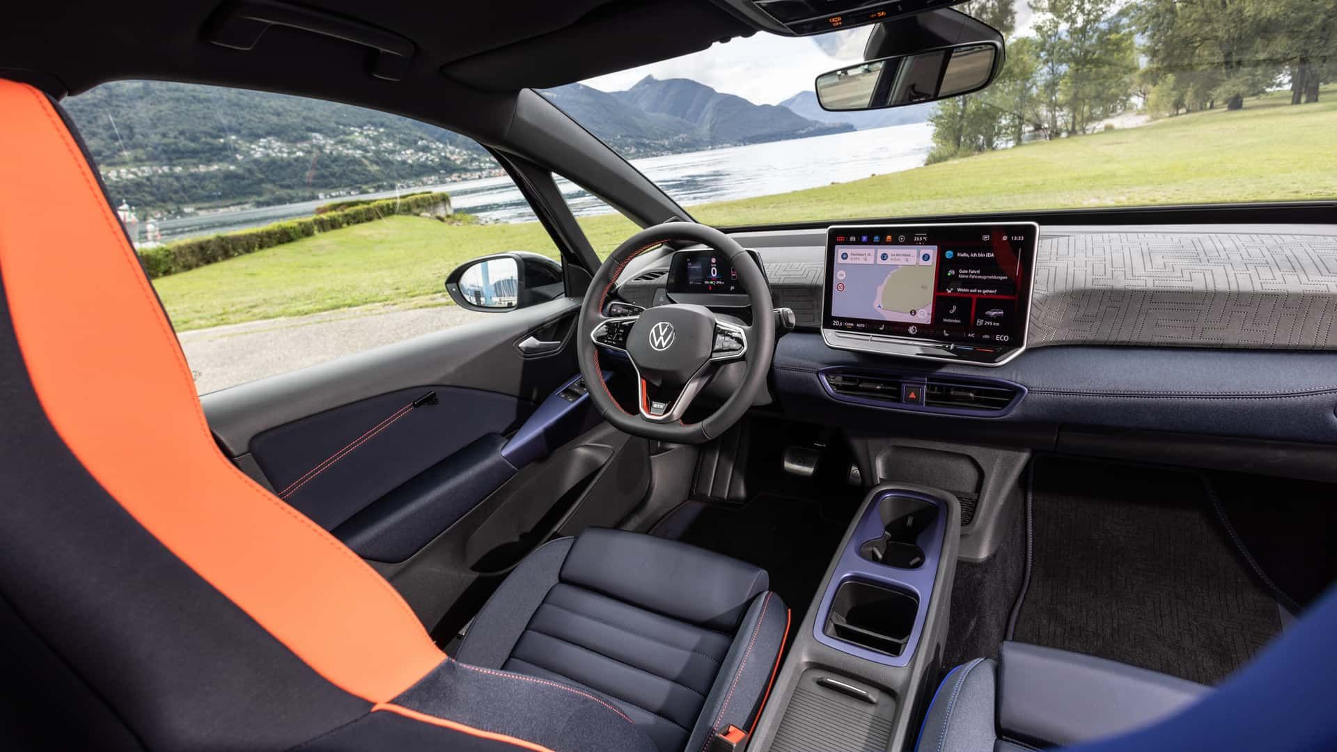 Зазирніть усередину, і здається, що передні сидіння мають вбудовані куртки. Потягніть блискавки вниз, щоб побачити іншу оббивку, що повертається до тканини, яка використовувалася в Golf Fire and Ice десятиліття тому. Сидіння — це, безумовно, найкрутіше в інтер’єрі, оскільки все інше — це стандартний ID.3: великий планшет, що стирчить із панелі приладів, і мінімальна кількість традиційних комутаційних пристроїв.