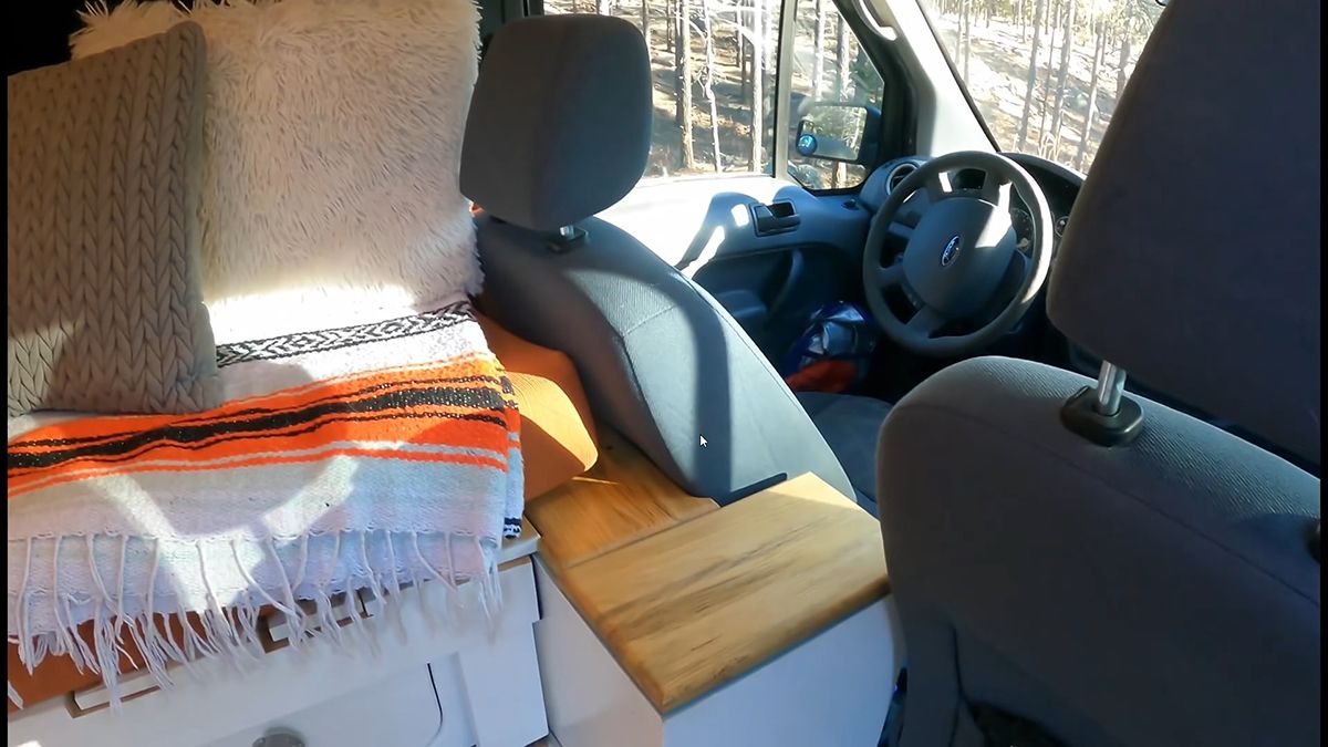Також є обігрівач, що працює на пропані, встановлений з боку кухні. Остін використовує душову насадку, яку можна прикріпити до задніх правих дверей для душу. Унікальною рисою цього авто є прихована вулична лавка, зварена з міцного стального профілю. Вона виконує функцію місця для сидіння на двох осіб, щоб насолоджуватися краєвидами навколо.